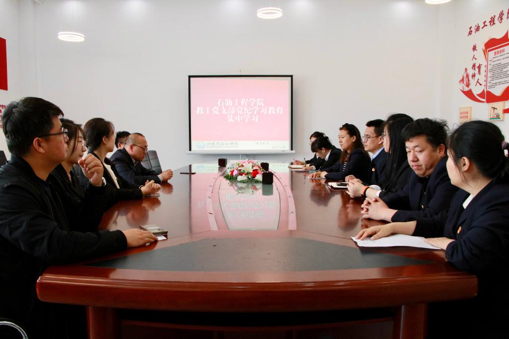 4月25日,石油工程学院教工党支部开展党纪学习教育集体学习,深研细读新修订的《中国共产党纪律处分条例》。石油工程学院教工党支部书记朱砂主持,全体教师党员参加。