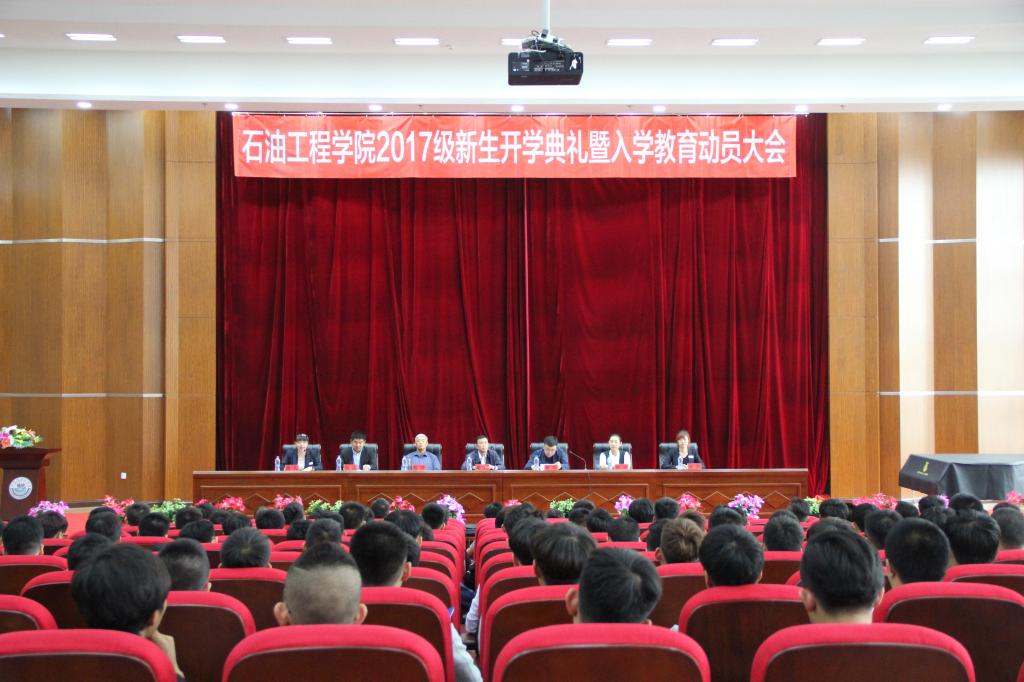 9月4日早8:20,石油工程学院于图书馆报告厅成功召开了“石油工程学院2017级新生开学典礼暨入学教育动员大会”。出席本次大会的有石油工程学院院长龙安厚,副院长李岳祥,副院长郑洲,石油工程学院党总支副书记康平军,科研处副处长王勇,特聘教授张大伟,团总支书记张雪,油气储运工程系主任朱砂,实验室主任刘鑫,钻井教研室负责人杨昭,流体教研室负责人王瑞,2017级辅导员王昱,油气储运教师王馨竹。石油工程学院2017级全体新生参加了本次大会。会议由石油工程学院团总支书记张雪主持。