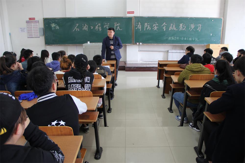 为增强同学们的安全意识,懂得在火灾、地震等突发事件来临时的安全自救能力,构建平安和谐校园。4月19日上午10点40,石油工程学院联合校保卫处在主教学楼404教室,组织消防安全疏散演习。校保卫处综合管理科科长张学斌及干事王岗亲临现场对同学们进行演习指导,我院2016级近200名学生参加了此次演习。