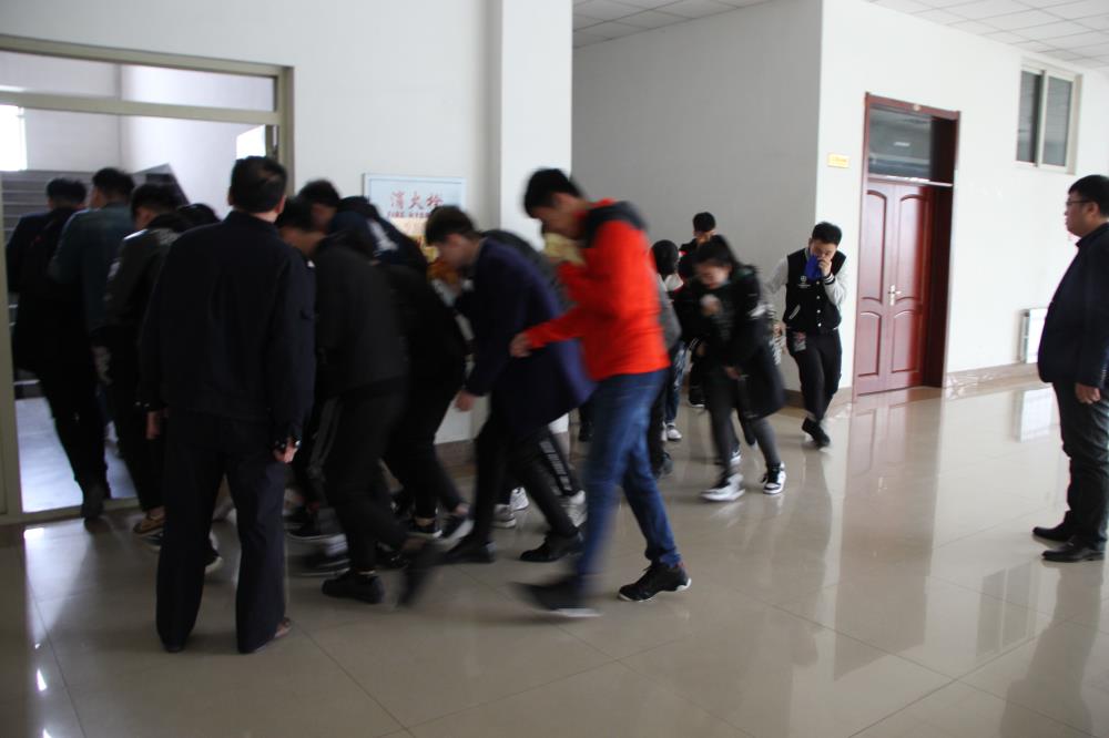 在疏散演习之前,保卫处消防干事王岗首先向同学们讲解了在火灾、地震等危险来临时如何采取科学有效的自救办法。同学们认真听讲,并拿出事先自备的毛巾按照要求进行操作。随后,院党总支副书记康平军向同学们强调了校园疏散演习的重要意义,并要求同学们一定要安全有序,严肃认真地对待接下来的逃离疏散行动,不得将演习流于形式,真正做到在最短时间内到达主楼前广场。随着团总支书记张雪老师的一声哨令,同学们按照逃生要求,双手用毛巾捂着口鼻,屈身弯腰,有序地从教室向外跑。在保卫处老师的指导下,大家冷静、快速的疏散到主教楼前的指定位置。成功撤离“危险区”后,保卫处张学斌科长对本次疏散演习进行了点评和总结,对同学们在逃生时的表现给予了充分肯定。