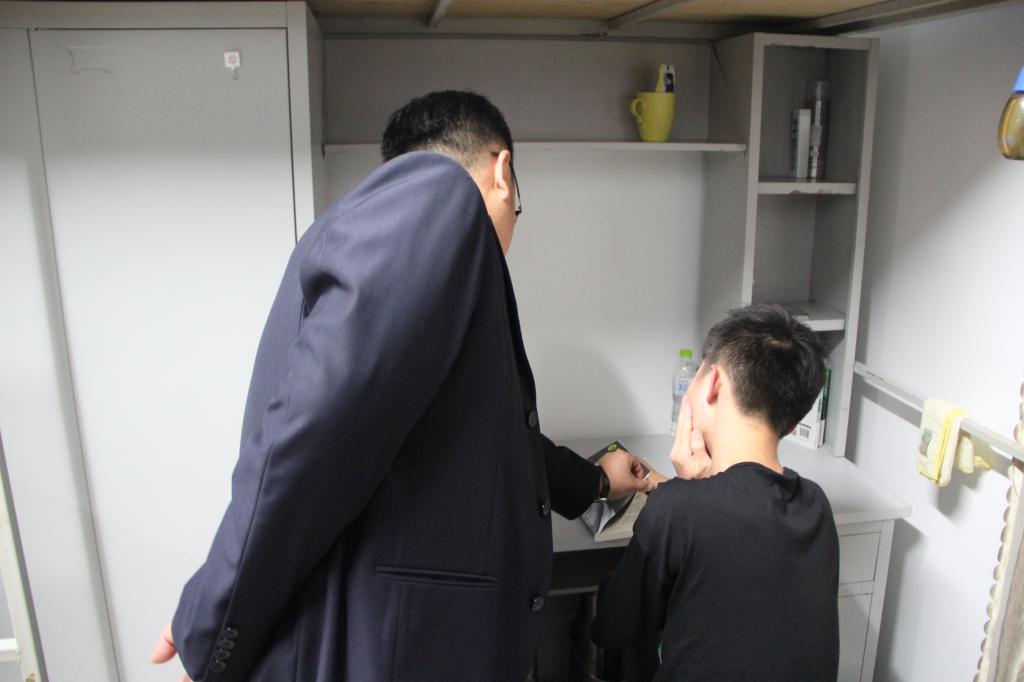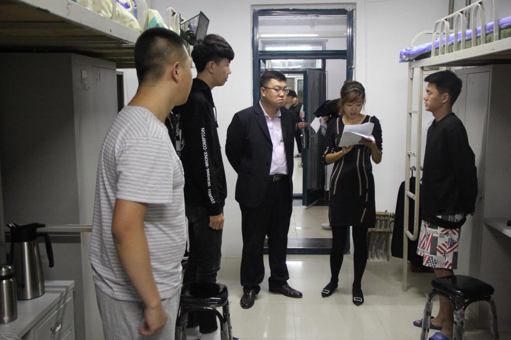 在宿舍走访中,康书记和王老师与每一位新同学进行了亲切的交谈,尤其是对那些距家较远的外省学生,康书记细心地询问了他们是否习惯哈尔滨的天气,能否习惯食堂的饭菜等。
