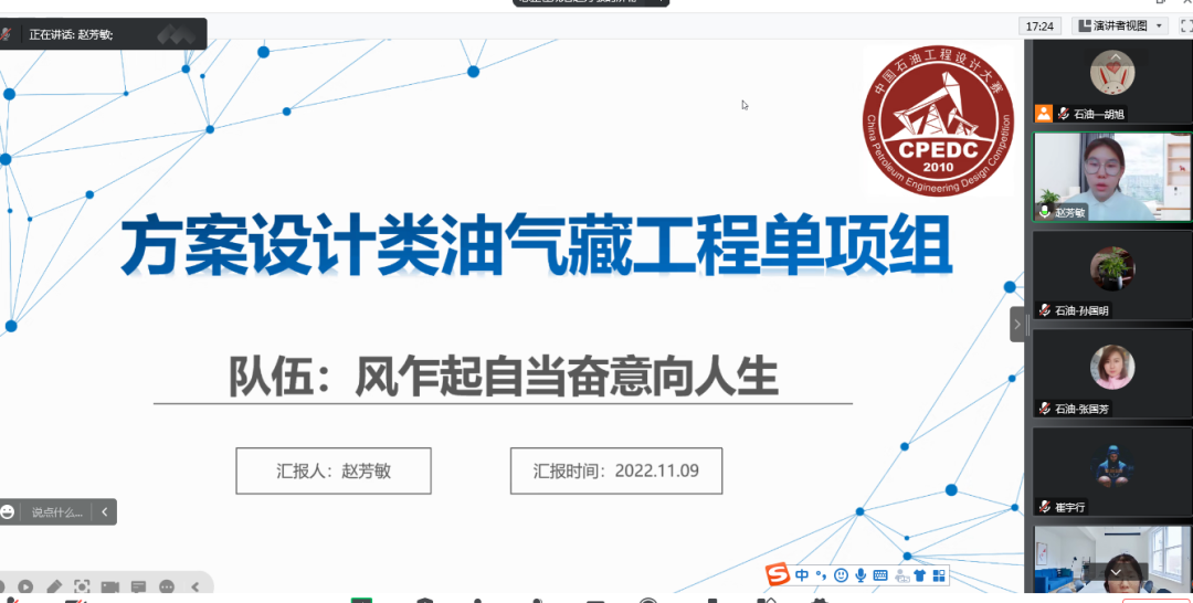 本场竞赛分为钻井工程单项组、油藏工程单项组、采油采气工程单项组三项。赛场中,各参赛团队准备充分,选手们进行了专业、流畅的汇报陈述,评委老师根据现场汇报情况与提交作品内容质量进行评分。