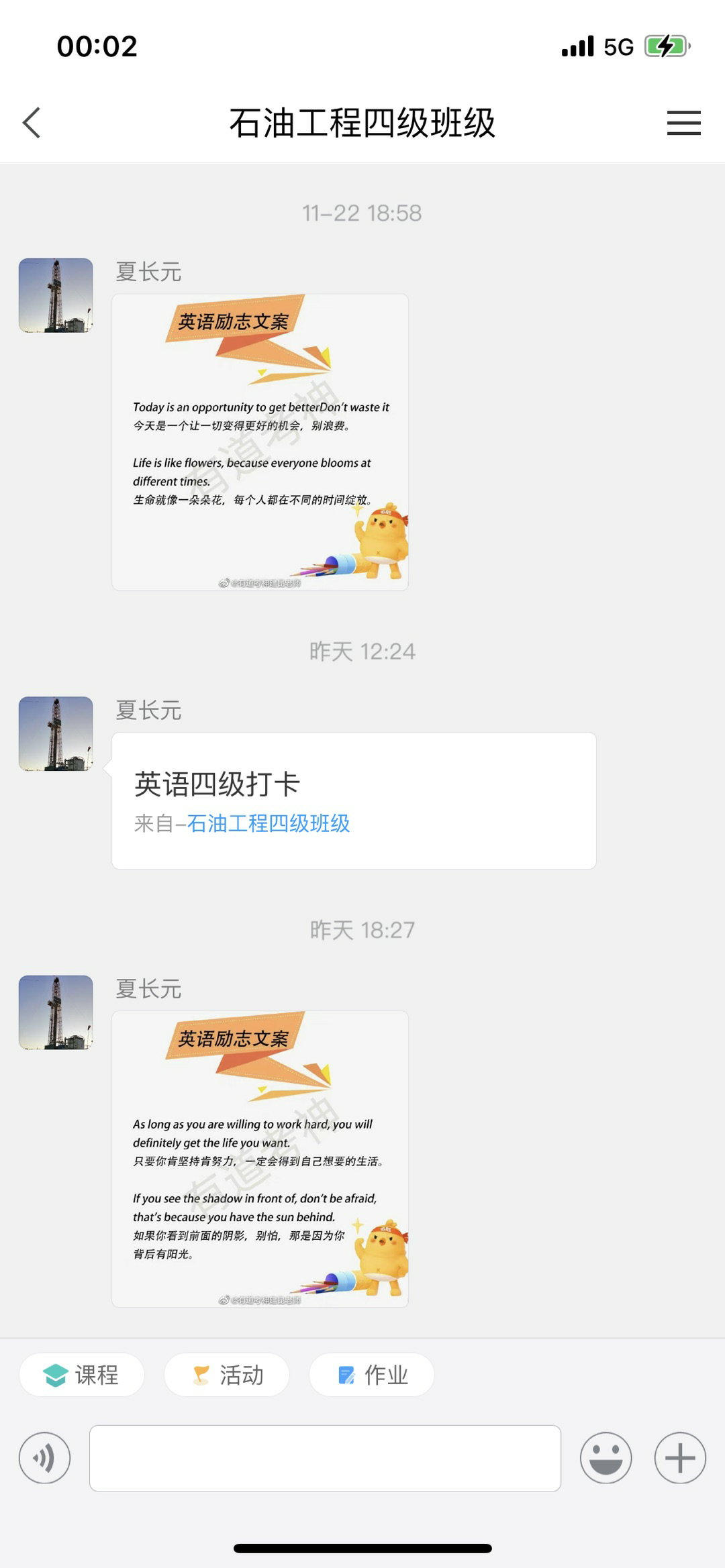 为更好学习贯彻二十大精神,落实以学生为中心的教育理念。从激发学生学习英语兴趣、增强学生学习英语信心、使学生充分备战国家四六级英语考试等角度出发,自10月底,石油工程系按照学院安排成立了英语四级学习班。该学习班由叶雪、李井洋老师为学生制定专门的四六级学习计划,学生自愿报名参加,各级辅导员老师宣传并成立班级,石油工程系教师负责监督指导,利用APP进行线上统一管理的形式进行。班级学生需按时完成学习计划中的学习任务,并在学习完毕后及时线上打卡;每周委派一名教师负责班级监督与管理总结工作,并随时为学生解答学习英语和备战四六级考试过程中的各种问题。