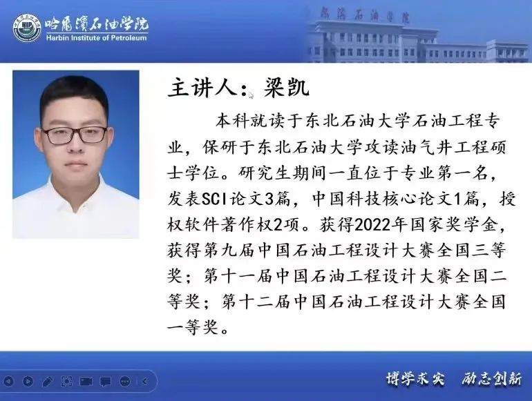 2023年3月14日下午两点,我院石油工程系在主教学楼703B会议室举办了“石油工程设计大赛钻井专题汇报”教研活动,我院李岳祥院长邀请到东北石油大学油气井工程专业硕士研究生梁凯为全体油工系师生做专题汇报。