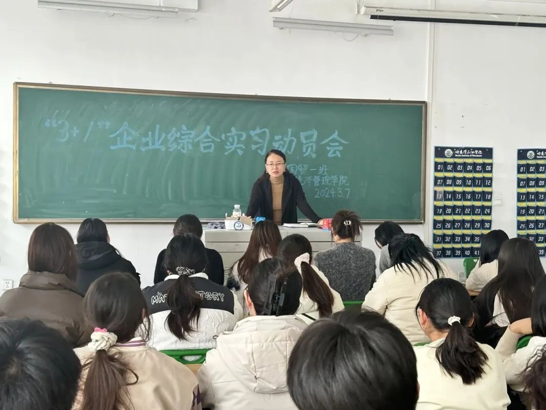 为帮助我院2021级学生深入了解社会需求,抓住宝贵的实习机会,落实好万博官网“3+1”人才培养模式工作部署,3月7日,经济管理学院党总支书记吴东爽和2021级辅导员陈志勇召开2021级“3+1”企业综合实习专业动员会,我院2021级全体学生参加。