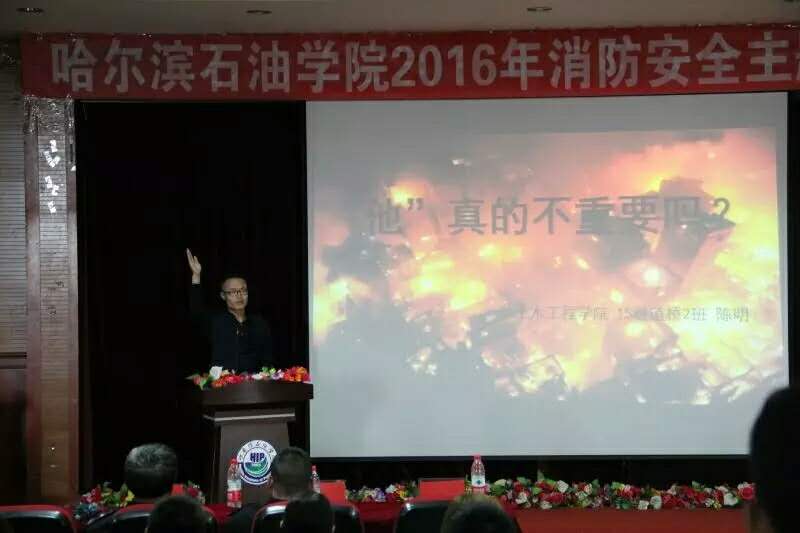 活动开始,校学生总会安全组为我们带来了有意思的节目。他们诙谐幽默的表演不仅赢得了观众们的阵阵掌声还让同学们明白了寝室吸烟的危害。在寝室吸烟,不仅危害身体健康更容易引发火灾等危险。在活动中,活动代表将PPT与自己的演讲内容完美融合,图文并茂的向我们讲解了防火的重要性以及火灾的危险性。他们结合消防安全制度以及各类火灾的案例,对如何树立公共消防安全意识、预防、杜绝可能引起消防事故的内外隐患、个人面对突发火灾事故应如何进行救灾及逃生等方面进行了全方面的讲解。观众都认真聆听并深受教育。活动结束后,嘉宾老师还为活动代表们颁发了最佳汇报人的奖状。