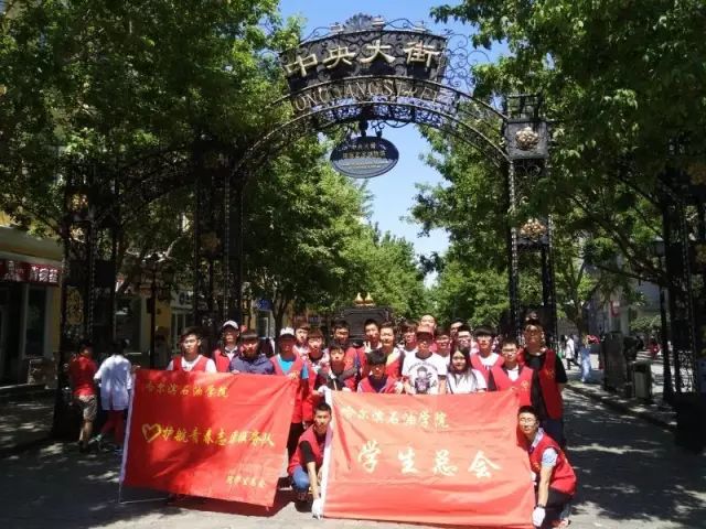 在这次的志愿服务中有一个意外惊喜。在我们的队伍行驶到中央大街的时候,有一个幸福的家庭指着我们队伍的大旗,特别惊喜的告诉我们他们毕业于我们万博max官网。他看到我们这个队伍感到特别的惊喜,还拿出手机拍照。他还告诉我们,看到石油学院的发展的越来越好,作为石油学子感到自豪与骄傲。不断有路过的行人称赞我们的志愿者是“好样的”,环卫大爷也满眼真诚的向我们招手对我们表示了由衷的感谢。