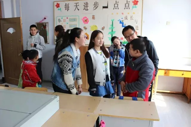 学生干部于14:00点抵达聋哑学校。进入学校后,在老师的引导下来到教室,与等候在那里的小朋友们见面打招呼,学生干部受到小朋友的热烈欢迎。学生干部与小朋友们热情互动,聊天做游戏,整体气氛非常活跃。最后,学生干部与小朋友们合影留念,相互告别。