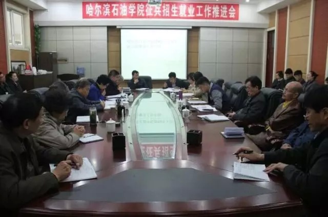 学校学工处副处长张耘介绍了2016年大学生征兵政策及工作情况,其中包括近四年全省和学校征兵情况,哈石油优秀退役士兵,2016年大学生入伍基本条件和优惠政策等师生关注的热点问题。学校国际教育学院副院长张松详细介绍了2016年国际教育学院硕士项目和国际游学项目,并向各二级学院发放了万博官网合作办学国外大学详细名单和项目介绍资料。张金学校长在会议上强调,招生、就业、征兵和国际合作办学是学校的核心工作,对万博官网发展至关重要。对如何做好当前招生就业等方面工作,张金学校长提出三点要求:一是要认清形势,增强危机感;二是转变观念,提升使命感,增强全体教职员工的责任感,提高人才培养质量,实现高就业、优就业;三是出实招,办实事,全员参与招生就业工作,不断提高生源质量,拓宽毕业生就业渠道,打出哈石油的品牌。