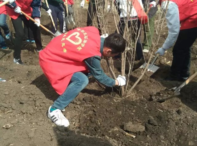 同学们到达指定地点后,纷纷有序的加入到植树行列,在温和的阳光下,参加活动的同学们分工明确,其乐融融。经过几个小时的努力,全体志愿者将700颗充满生机和希望的树苗植入土里。大家看着那一片自己亲手种下的树苗在微风中摇曳,不约而同的露出了幸福的笑容。
