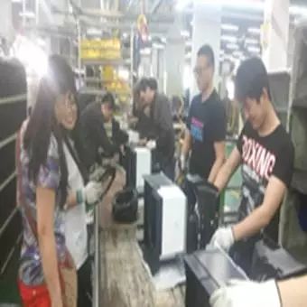 进入公司后,我院一行四人在天津公司运营部经理陈慧敏的陪同下参观考察了LG的展厅、车间。继而,又与在车间工作的我院学生进行面对面的交流,了解了他们这段时间的工作心态并送上了亲切的慰问。看到学生如此认真的工作态度,副院长贾鸿莉表示非常感动和心疼。