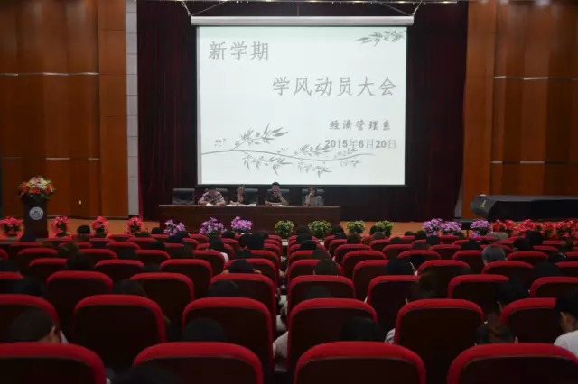 为切实加强学风建设,为学生的成长成才营造良好的教育环境,8月20日,经济管理系在图书馆报告厅召开2015—2016学年新学期学风建设动员大会。系主任冯研、党总支书记谭芳、副主任任洪云及团总支书记陈志勇老师出席会议,全体同学参会。