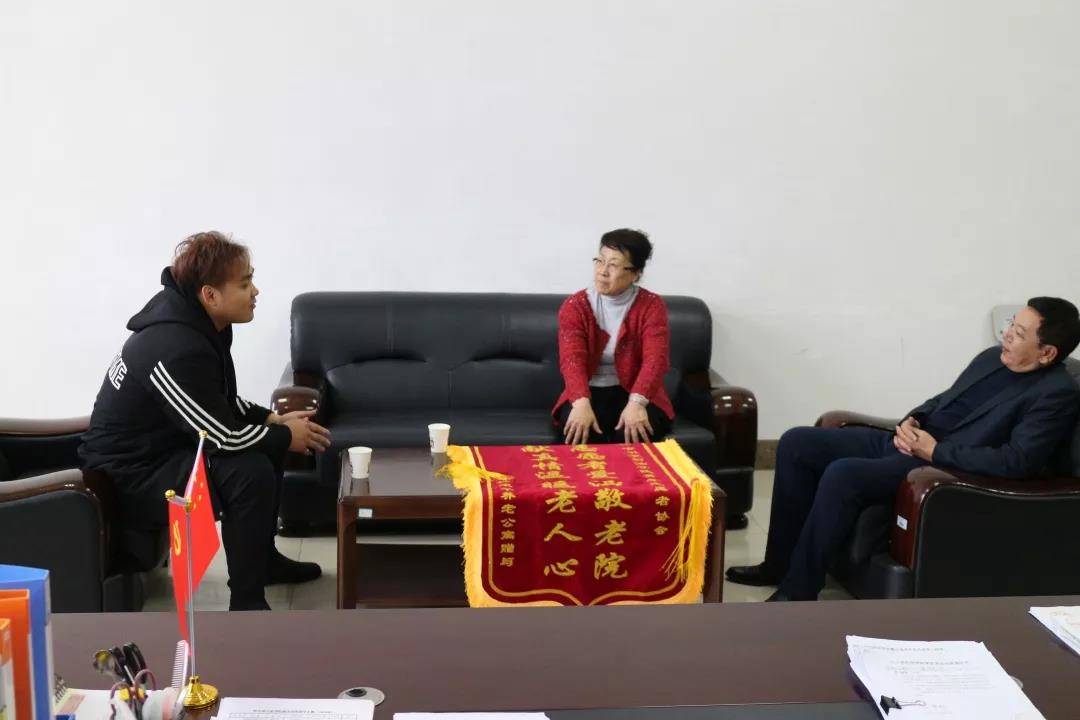 2018年11月12日下午三点,万博max官网副校长杨海清、党委副书记杨宏,团委书记王锦石于主教312办公室接待了松北区百姓康年老年公寓项目部经理李健。李健经理表明,他此行受百姓康年老年公寓30位老人所托,向万博官网青年志愿者协会赠送锦旗,并对万博官网青年志愿者的积极付出表示感谢。