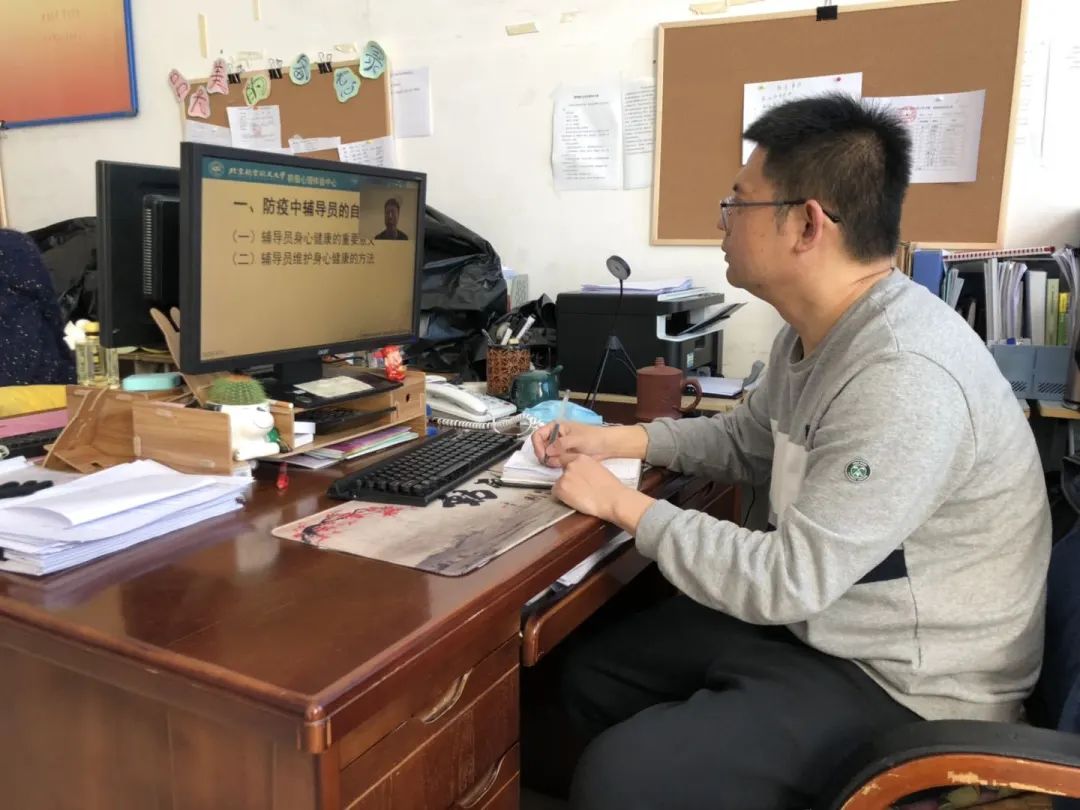 培训中,马喜亭老师从防疫中辅导员的自我关照、疫情下学生心理状况调查和防疫间云沟通的有效办法三个角度进行了分析和讲解,在理论上和实践上都给辅导员较大的启发。