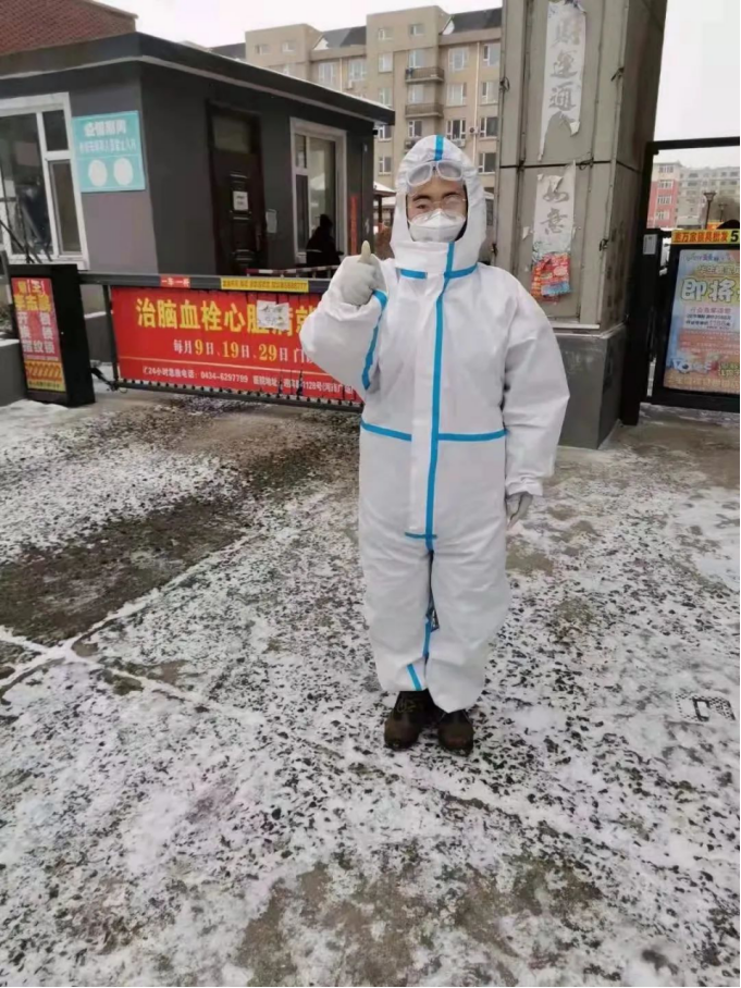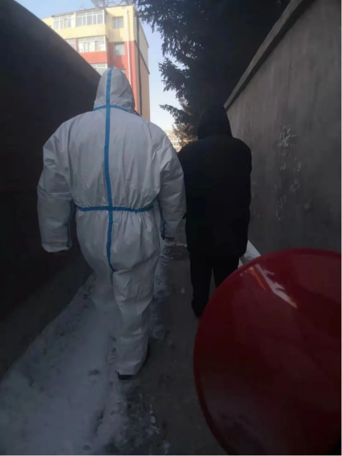 由于核酸检测点的医护人员调往了相对严重的地方,造成了人手不够;他主动请缨去向医务人员学习如何去采集咽拭子;核酸采集说起来简单,看起来容易,可执行起来需要非常高的配合度才能完成。从刚开始的动作缓慢、效率低下到如今可以高效率完成;对于没有采集经验的他而言,这何尝不是一个进步呢。在每轮现场核酸检测接近尾声时,他需要马上与医护人员一起下户到那些老弱病残不能到现场的居民家里去做核酸。协助网格员拿着名单,带领医护人员穿梭在风雪中。穿着防护服很累甚至感到闷热,但他依然坚持着,不耽误一分一秒钟。采集完核酸样本后,他坚持给每家消完毒才能离开。