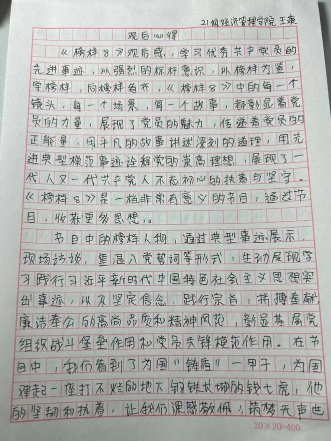 为持续推动主题教育走深走实,教育引导基层党组织和广大党员干部学习榜样、争当先进,主动作为、担当有为,12月21日,经济管理学院党总支迅速响应,组织师生党员收看由中央组织部、中央广播电视总台联合制作的《榜样8》专题节目。