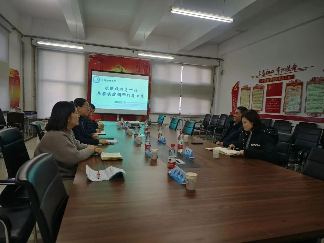 12月21日,万博官网党委副书记、纪委书记刘铎及宣传统战部副部长杜嘉殷莅临我院调研指导工作。我院院长任洪云、党总支书记吴东爽、副院长郑彩飞、院长助理宋蕾、团总支书记邱晨明陪同调研。
