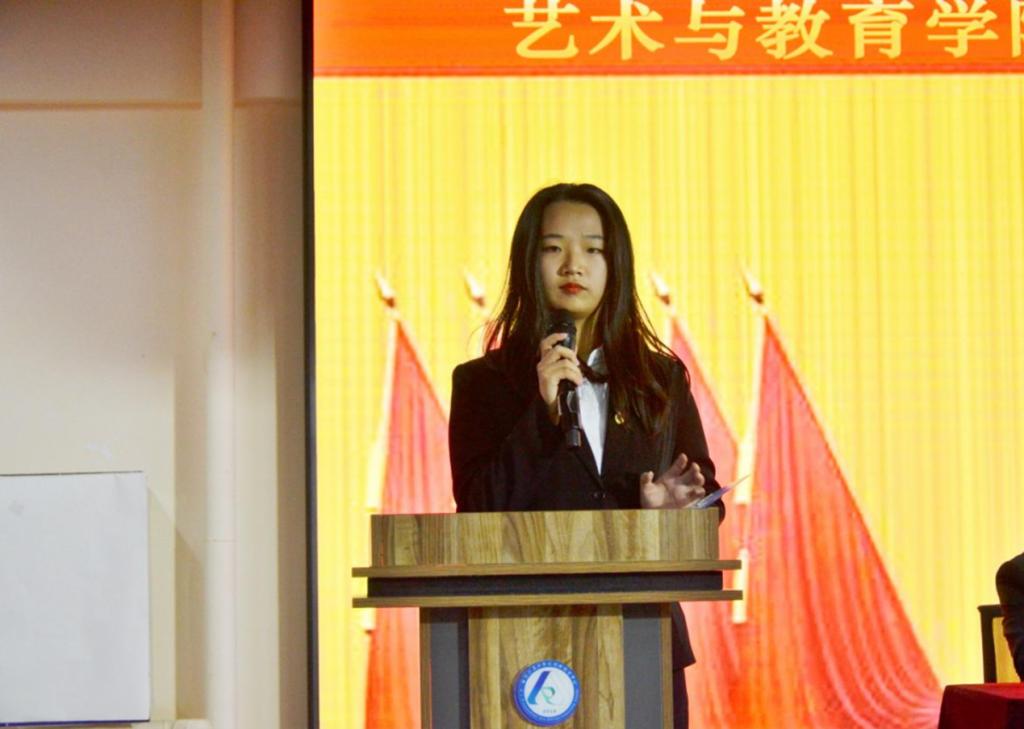 大会第五项,艺术与教育学院学生代表王宝佳宣读《艺术与教育学院第一次团员代表大会委员候选人情况》