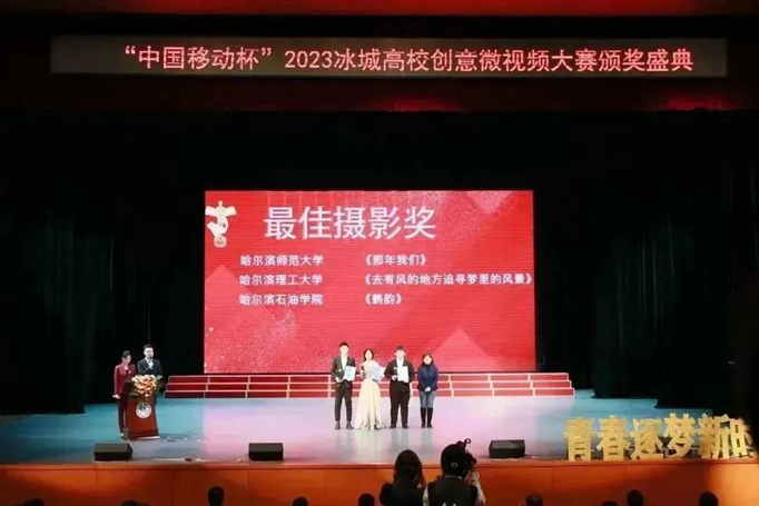 11月29日,由黑龙江省高校网络思想政治工作中心、哈尔滨市联合会、哈尔滨日报社、共青团哈尔滨市委会共同主办的“中国移动杯”2023冰城高校创意微视频大赛颁奖典礼于黑龙江财经学院举行。我院广播电视编导专业学生王铭阳、麦佳兰、赵宇豪、张晏熹、王一丹同学选送的作品《鹤韵》展获大赛“最佳摄影奖”。