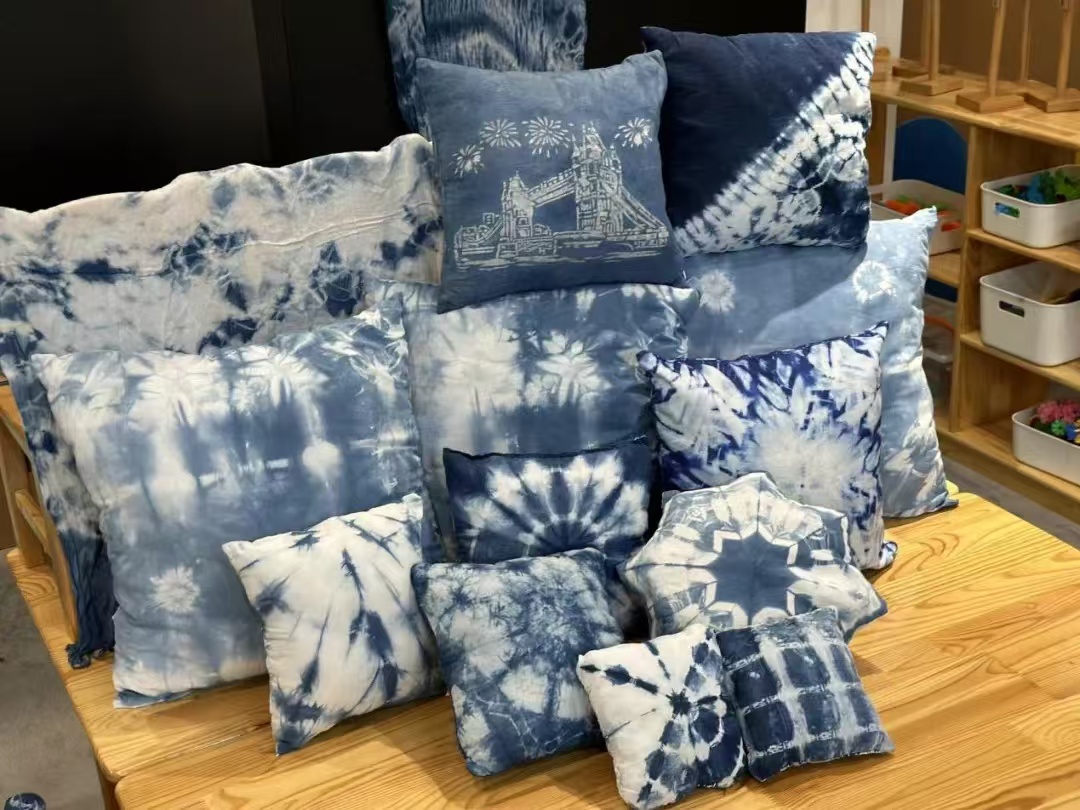 为了让同学们认识学习非遗剪纸及传承蓝染技艺,艺术与教育学院刘雪老师在开展《文化遗产创意玩教具制作》课程中,指导学生将非遗技艺与幼儿园玩教具完美结合,非遗剪纸与玩教具的融合,观看古代走马灯创作技巧,指导学生通过剪纸作品与走马灯结合;翻阅幼儿绘本多种形式,指导学生通过剪纸形式制作《长征精神》剪纸绘本、科普航天类立体绘本、五十六个民族剪纸绘本等作品。蓝染技艺与现代生活物品结合,通过对蓝染四大技艺的讲解,指导学生分别运用扎染、型染、夹染和蜡染四大技艺,制作幼儿玩偶、生活物品、服饰、首饰等,优秀作品共计300余件。在课堂上22级学前教育的同学们认真耐心,积极参与,用自己创造性思维融进非遗文化。