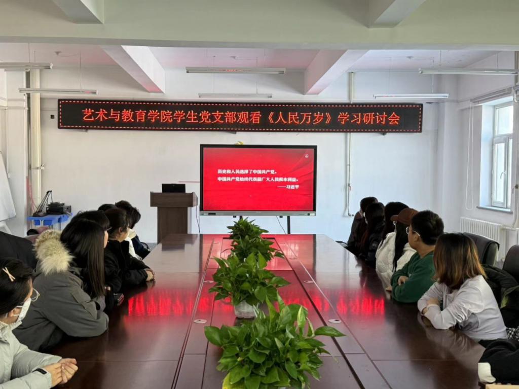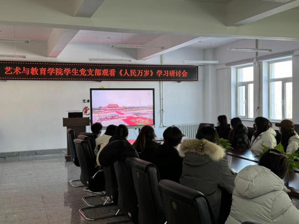 为扎实开展学习贯彻习近平新时代中国特色社会主义思想主题教育,提升学生党员的党性修养,坚定信仰信念,砥砺初心使命,12月11日,艺术与教育学院党总支组织全体师生党员在艺术楼415会议室观看党员教育专题纪录片《人民万岁》。