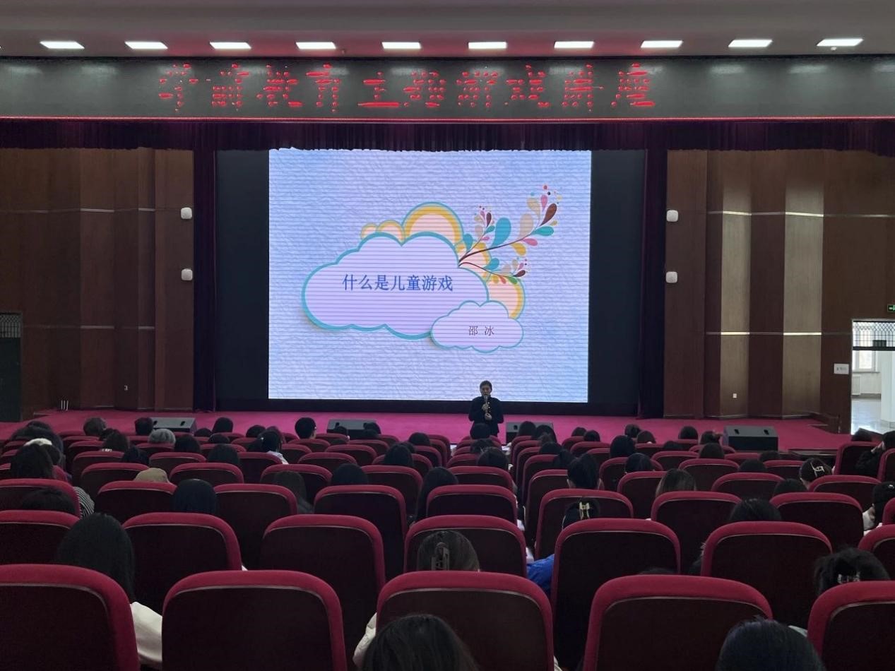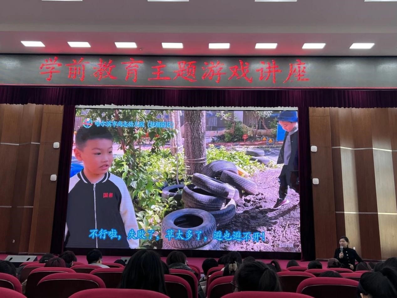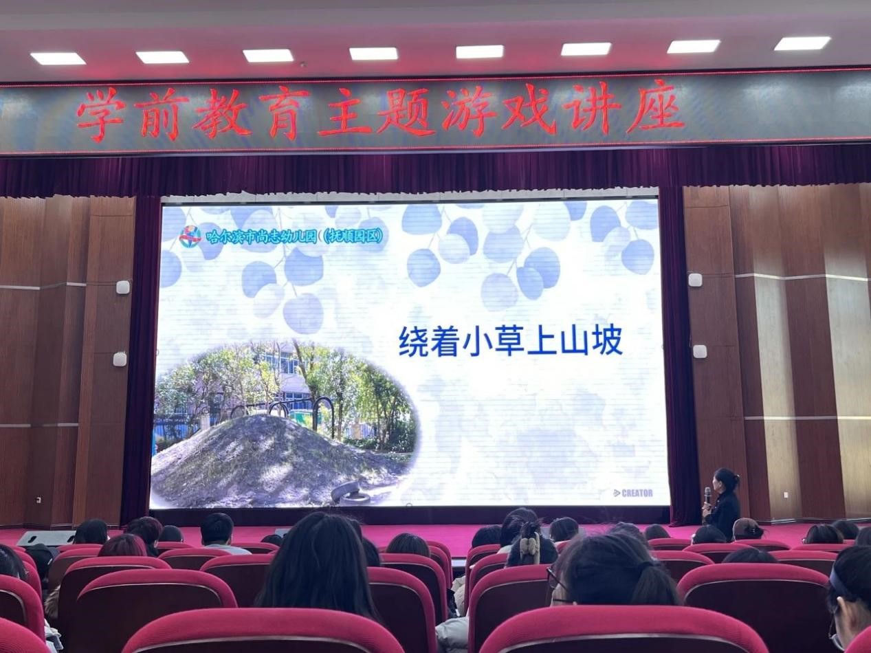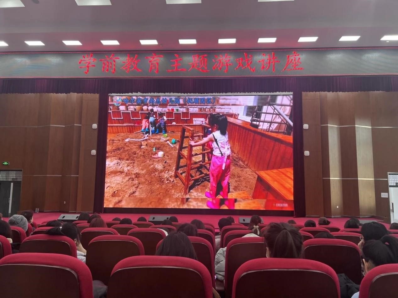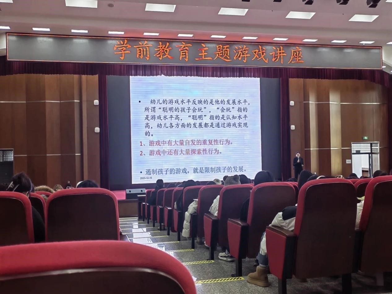 游戏是儿童的基本活动,是幼儿创造性的源泉。为进一步提高我院学前教育专业人才培养质量,提升学生专业素养,探索教育教学改革新模式,推动我院学前教育工作进一步发展。2023年12月15日,艺术与教育学院学前教育系在图书馆报告厅组织举办“学前教育主题游戏”讲座。本次讲座邀请到松北区学前教育发展中心主任、宋庆龄教育奖获得者、黑龙江省学前教育研究会副秘书长、黑龙江省国培专家、哈尔滨市学科带头人、市骨干、教育部港澳台办优秀指导教师邵冰主讲,我院学前教育系全体教师和2021级全体学生参加此次讲座。