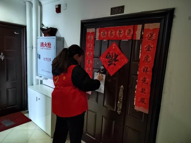 活动伊始,我院学生们在负责人张月的组织下来到地中海社区活动中心,在社区工作人员的组织下有序领取安全提示卡。将印有燃气安全、消防安全、防溺水安全、冰面安全、悬冰安全、车辆安全等知识的安全提示卡送到居民家中、粘贴到单元门上,并且用通俗易懂的语言帮助居民学习安全知识,掌握基本安全技能,确保生命财产安全,做到防范于未然。