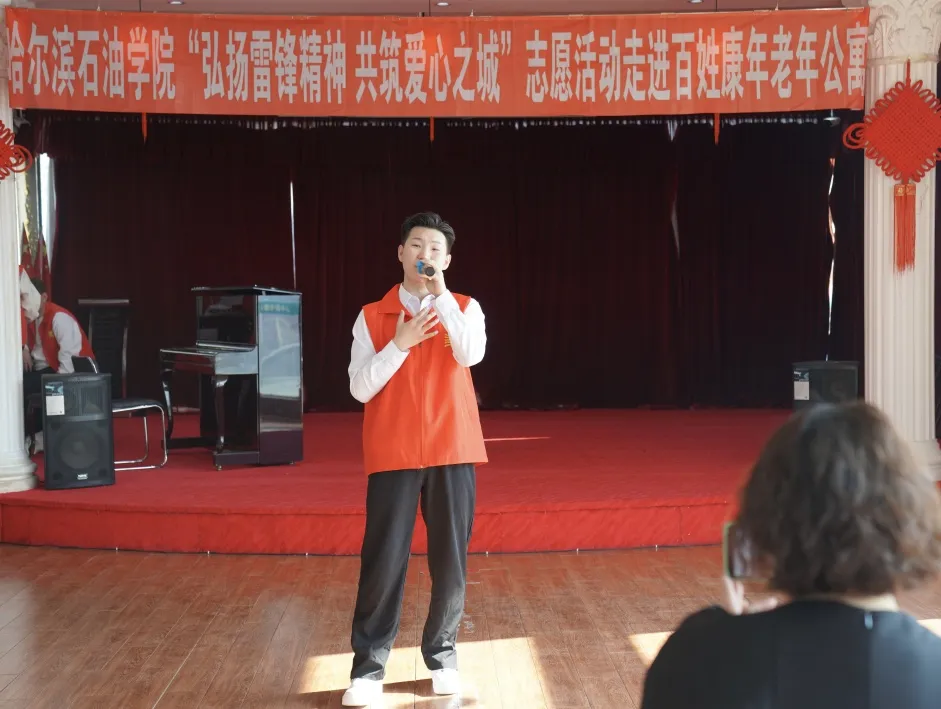 授牌仪式上,百姓康年老年公寓副院长张丽波向代表参加仪式的学院领导和青年志愿者们详细地介绍了青年志愿服务基地的基本情况,并对下一阶段志愿服务工作的开展思路作了分享。她表示会努力为我院开展志愿服务活动提供相应的支持和帮助。随后,艺术与教育学院党总支书记刘强发言,首先,他代表艺术与教育学院对百姓康年老年公寓对我院青年志愿服务活动的大力支持和帮助表示由衷地感谢,并强调了实践基地是雷锋精神的传递与志愿服务精神的延续,也是我院学子们深入了解社会、融入社会、服务社会、奉献社会的平台,希望同学们依托于基地,在这里为老人们提供细致入微的志愿服务,充分地展现新时代青年的良好风貌。最后,我院青年志愿者协会负责人张月对百姓康年老年公寓全体工作人员表达感谢,并表示会不断地用实际行动诠释志愿服务精神,传递乐于奉献的美好品质,续写新时代雷锋故事的崭新篇章。挂牌仪式结束后,志愿者们为老人们带来了精彩的文艺演出同他们一起度过了温馨快乐的时光。