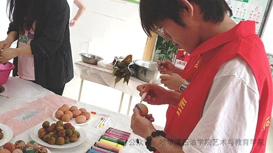 志愿者们还拿出了鸡蛋和颜料,与老人们一起画起彩蛋。大家充分发挥自己的想象力,在鸡蛋上绘制出各种精美的图案,并送给老人们作为小礼物。志愿者们用实际行动让他们感受到了节日的温暖和陪伴。