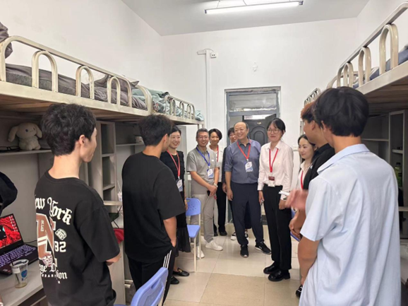 老师们逐一走访每一间新生寝室,与新生们面对面交流,细致了解他们的生活习惯、学习情况以及对大学生活的初步感受。院长强调,学院是每一位学生的坚强后盾,鼓励新生们积极适应新环境,勇于面对挑战,合理规划大学生涯。老师们还就专业学习、校园生活、心理调适等方面给予了悉心指导,解答了新生们的疑惑。