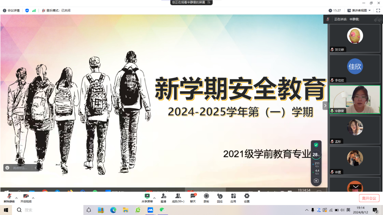 为了更好地引导 2021 级学生实习工作,提高学生对实习重要性的认识,强化实习期间的安全意识。艺术与教育学院于2024年8月12日开展2021级企业综合实习安全教育主题班会。