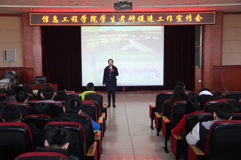 本次宣传会信息工程学院邀请东北林业大学、哈尔滨商业大学、黑龙江科技大学负责考研招生的导师为14级全体学生进行考研指导,三位导师详细解读了各自院校研究生招生政策、考研攻略等,分析了上届毕业生的考研情况,提醒准备考研的同学要做好前期准备工作。导师们共同就同学们关注的问题进行了现场答疑,为同学们报考研究生提供了指导性和建设性的意见。