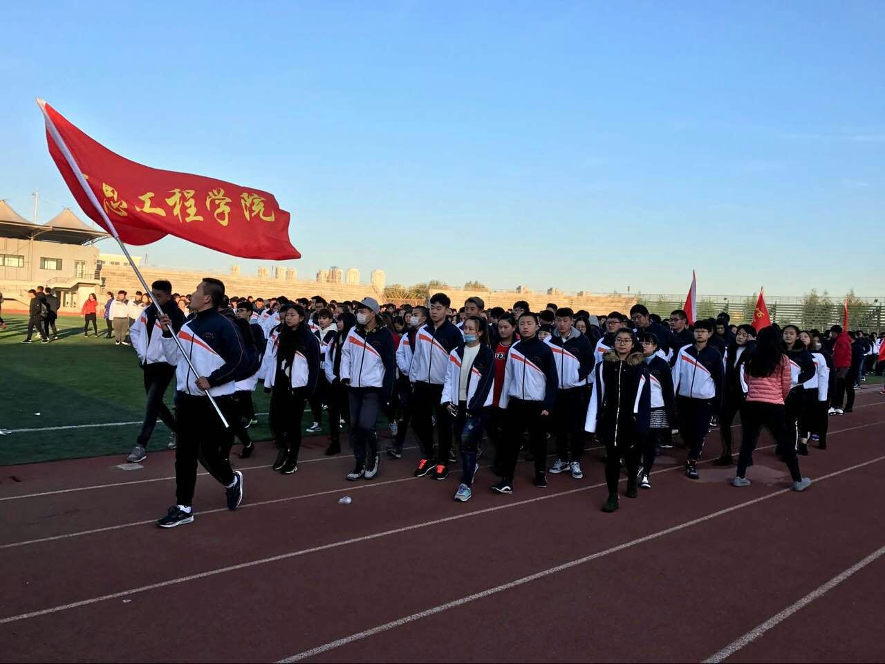 仪式第一项,由万博官网大学生国旗队迎国旗。伴随着嘹亮的歌声,阵容齐整的校国旗队齐步出场,铿锵的步伐、坚毅的目光、响亮的口号、飒爽的英姿充分展现了万博官网学生的精神风貌;仪式第二项升国旗,奏唱国歌,伴随着庄严的音乐响起,现场学生向国旗行注目礼,五星红旗冉冉升起,表达了对革命先烈的无限哀思和崇高敬意与对祖国的无限热爱。我们为祖国母亲自豪;我们愿意为她倾吐满腔的心愿,为祖国骄傲。让希望和憧憬展翅飞翔,让我们携起手来疾步向前,用智慧的汗水,去浇铸共和国明天的灿烂和辉煌。