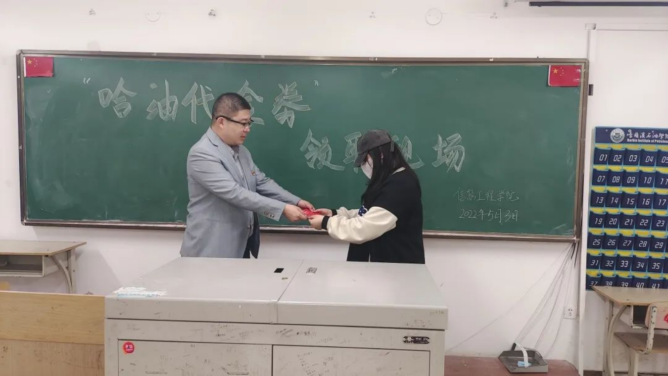 5月3日,按照学校统一部署,向在校内的982名学生发放了“哈油代金券”。