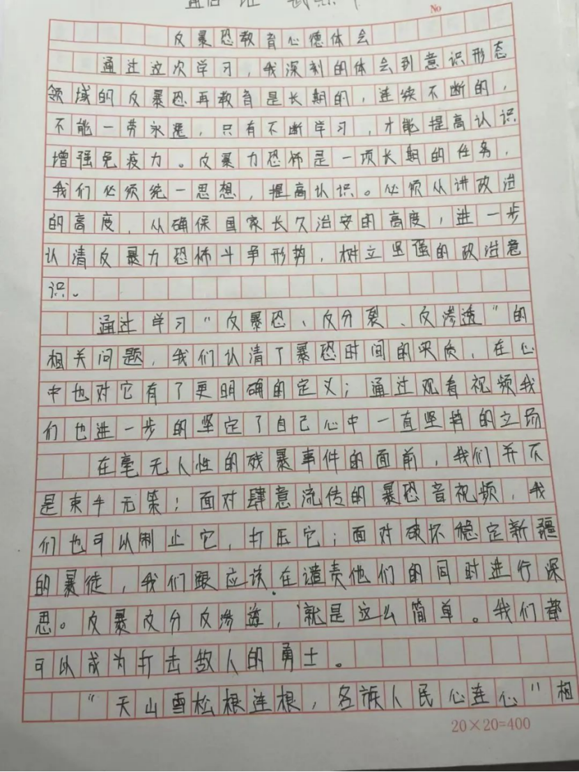 信息工程学院学生武煦川这样说道:“在毫无人性的残暴事件的面前,我们并不是束手无策;面对肆意流传的暴恐音视频,我们也可以制止它,打压它;面对破坏稳定新疆的暴徒,我们更应该在谴责他们的同时进行反思。反暴反分反渗透,就是这么简单。我们都可以成为打击敌人的勇士。”