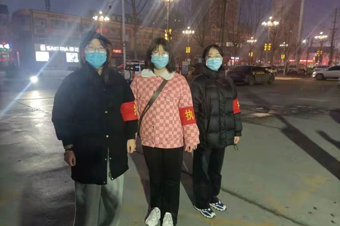 在志愿者岗位上,侯志童同学切实的为人民服务积极协助开展全民核酸工作和卡点值班登记工作,在全面核酸现场秩序进行维护,确保现场秩序的稳定,引导人民群众便捷的完成核酸检测,保证不漏检不混检;还积极参与了“敲门行动”和“双禁行动”来帮助防疫信息更加完整,为人民的安全加“保险”。忘不了的是寒冬之下手被冻得通红仍然坚持核酸检测信息录入;是“敲门行动”中没有桌椅板凳蹲在地上也要完成手动登记;是即使大年三十家人团聚的日子也要坚持夜间“双禁”巡逻......
