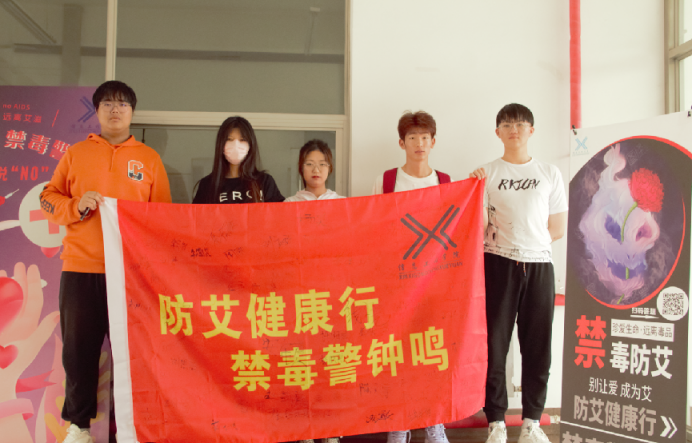 活动中,由学生组织成员为同学们讲解有关于禁毒防艾的相关知识,同学们了解后扫码进行禁毒防艾知识的答题,同学们积极踊跃的参与其中,并在禁毒防艾的签名旗上签名留念。