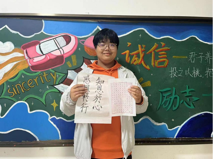 活动中,我院22级的同学们积极参与其中,同学们认真写下每一个笔画、每一个汉字,通过书法将“诚信、感恩、励志”进行了深度的诠释。在展示书法丰富的艺术内涵的同时,也给烘托了“诚信、感恩、励志”的精神体现。