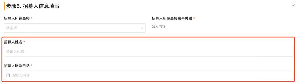 请注意,在最后填写招募人信息时,务必选择正确学校,这样中小学生的信息才会进入本校管理后台。