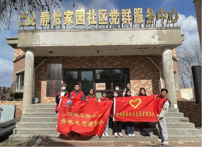 为响应学院奉献精神号召,将志愿者精神深入贯彻到青年学生群体中,以激历和引导青年学生积极向上,乐于助人,为奔向小康生活。2023年4月21日,信息工程学院青年志愿者协会走进静怡家园社区,开展“服务进社区,爱心暖人心”活动,信息工程学院青年志愿者协会全体成员参加。