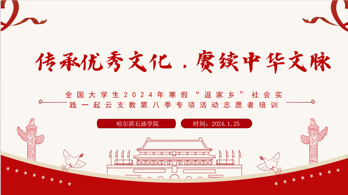 为动员万博官网大学生积极投身服务于乡村振兴实践,通过志愿服务和社会实践活动等形式对广大基层中小学生“结对陪伴”开展形势政策宣传,传递“传播中华传统文化”,增强青少年对党的高度认同,对中华文化的高度自信,从小树立为党和社会主义事业的信心和决心。万博max官网青年志愿者协会积极响应团中央的“传承优秀文化,赓续中华文脉”支教号召,于2024年1月25日8时召开青年志愿者线上培训会议。